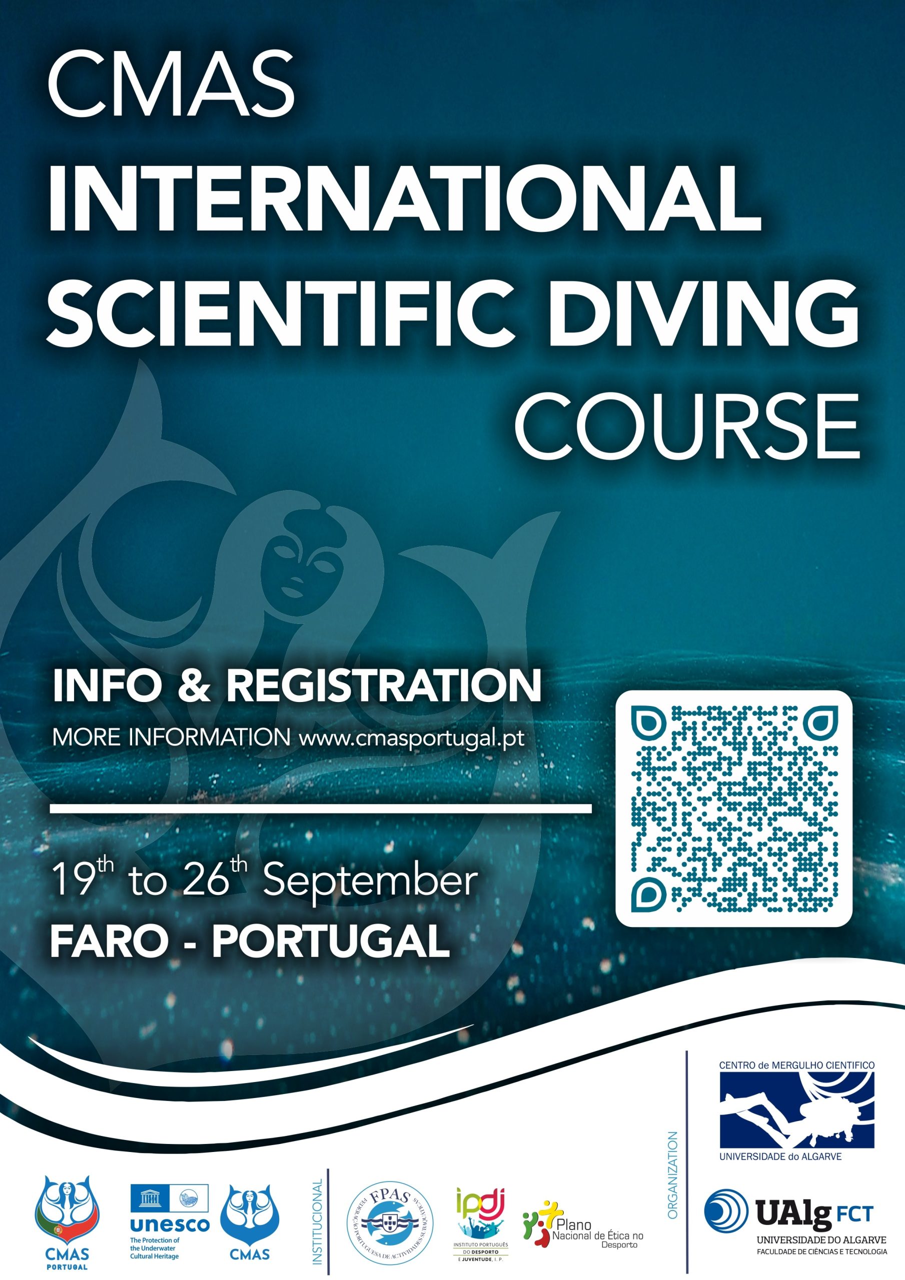 We are delighted to invite you to the CMAS International Scientific Diving Course, taking place in the beautiful city of Faro, Algarve, Portugal, from 19th to 26th September 2025.